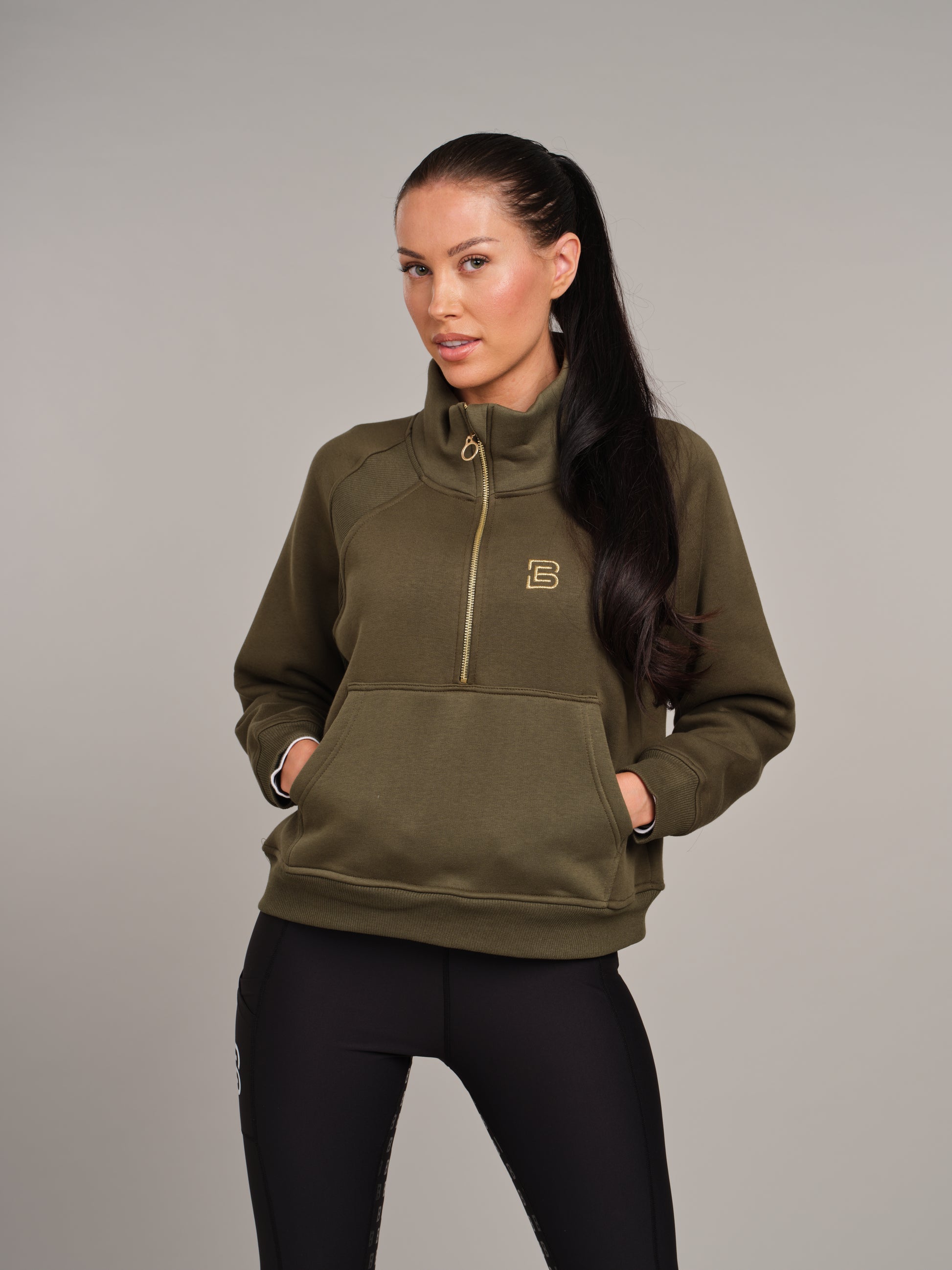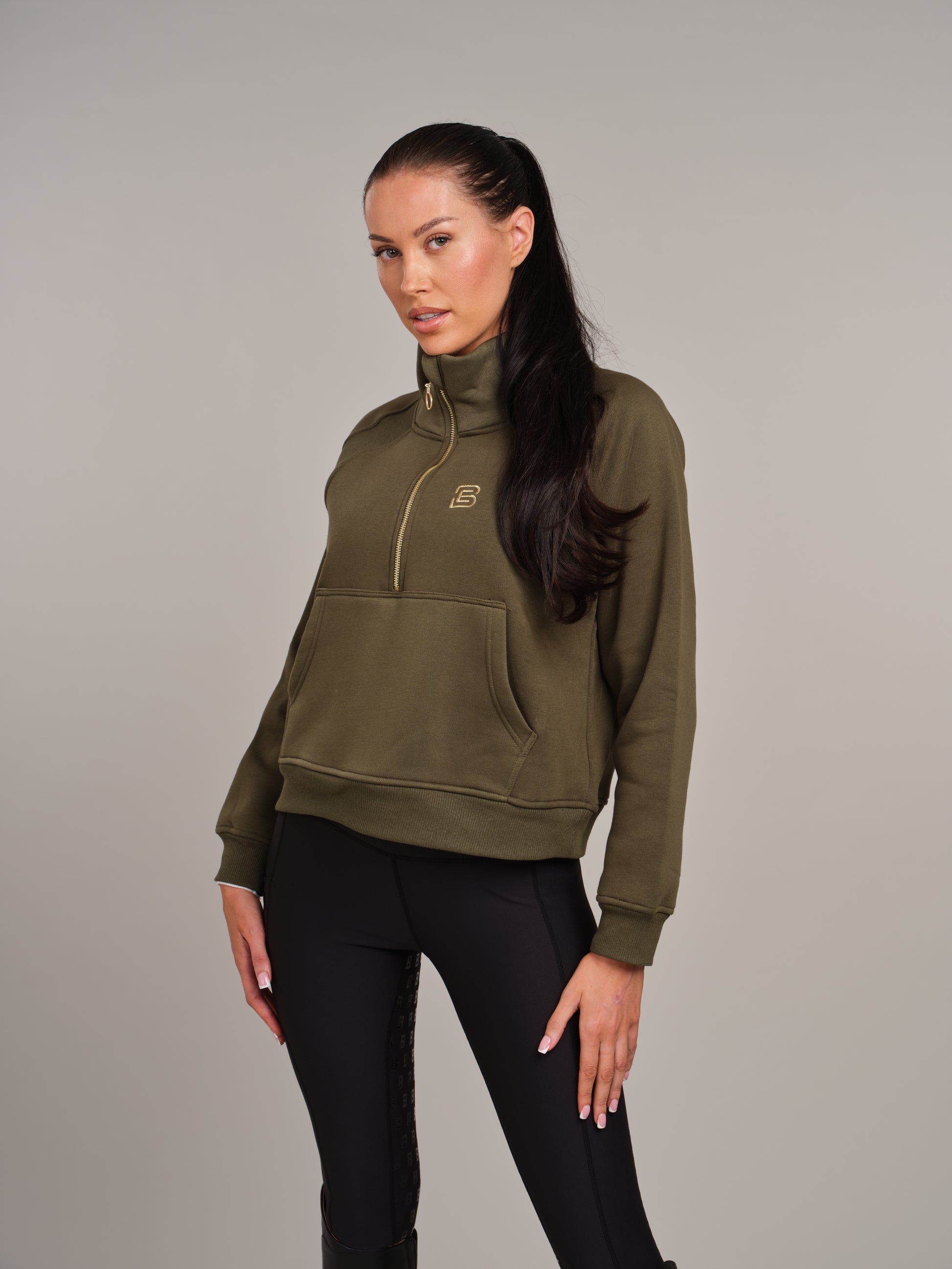 Khaki 1/2 Zip Sweatshirt