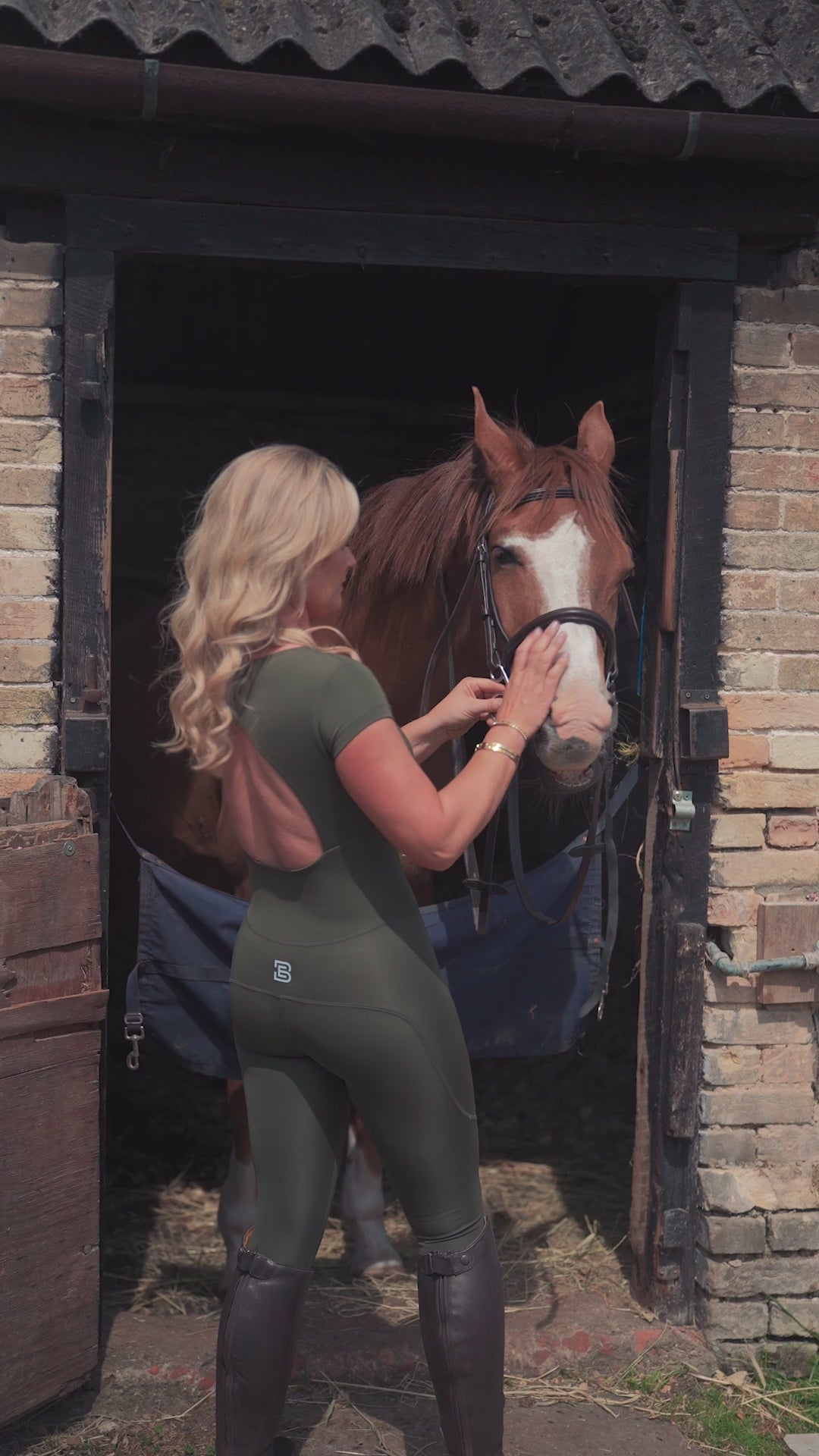 Introducing the Khaki Equestrian Jumpsuit – the perfect blend of functionality, style, and comfort for the modern equestrian. Designed with both the rider and fashion enthusiast in mind, this jumpsuit is your ultimate companion for riding sessions, stable chores, or a casual day out.